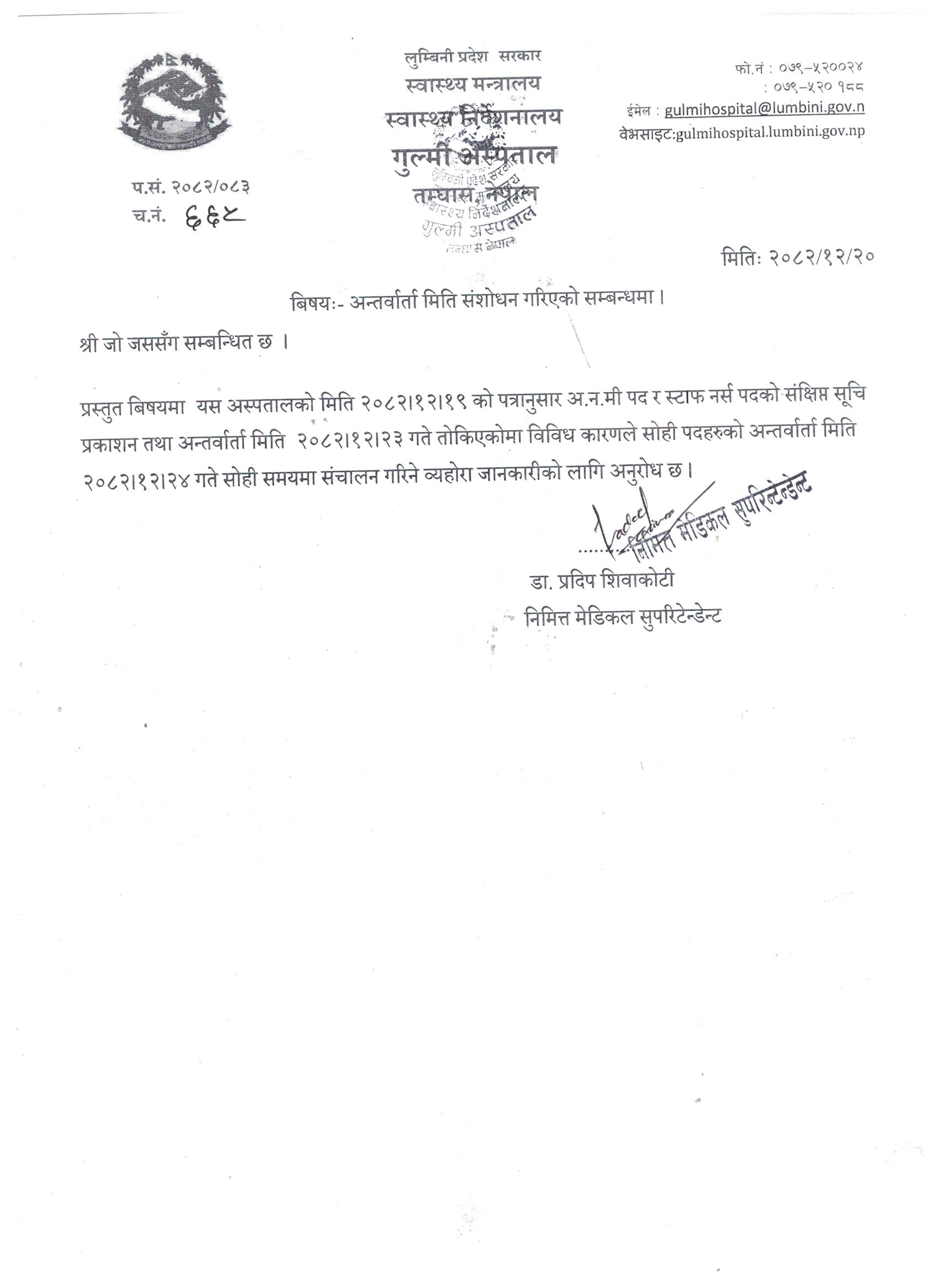 अन्तर्वार्ता मिति संशोधन गरिएको सूचना